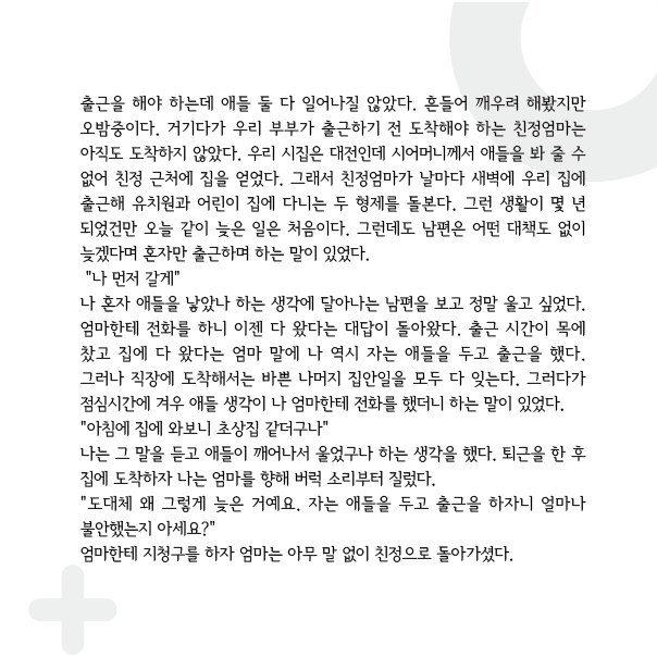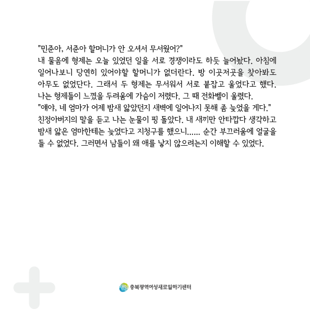e북 홈 > 소통 여기로 > e북 제목 [수기 e북] ep41. 부모와 자식 작성자 관리자 조회수 2015 등록일 2021-09-30 첨부 첨부41.jpg (151,460 KB, Download : 332) 등록목록 댓글달기 500자 이내로 작성하여 주십시오. [개인정보 수집∙이용에 관한 동의] 정보통신망법 규정에 따라 이벤트를 신청하시는 분에 한정하여 수집하는 개인정보의 항목, 개인정보의 수집 및 이용목적, 개인정보의 보유 및 이용기간을 안내 드리오니 자세히 읽은 후 동의하여 주시기 바랍니다. 첫째, 이벤트의 원활한 진행을 위해 다음과 같은 최소한의 개인정보를 필수항목으로 수집하고 있습니다. (필수항목: 이름, 연락처) 둘째, 개인정보의 수집 및 이용목적은 이벤트 당첨시 당첨선물의 빠른 전달을 위함이며 이벤트가 종료되는 시점에 당첨자를 제외한 모든 정보를 삭제합니다. 위 사항을 읽어보지 않아 생긴 불이익에 대해서는 일체 책임지지 않습니다. 동의함 동의하지 않음 이름 휴대폰 번호 010 011 016 017 018 019 - - 비밀번호 자동입력방지 ※ 자동입력방지번호를 입력해주세요 비밀댓글 여부 비밀댓글을 사용하시려면 체크해주세요. 등록하기